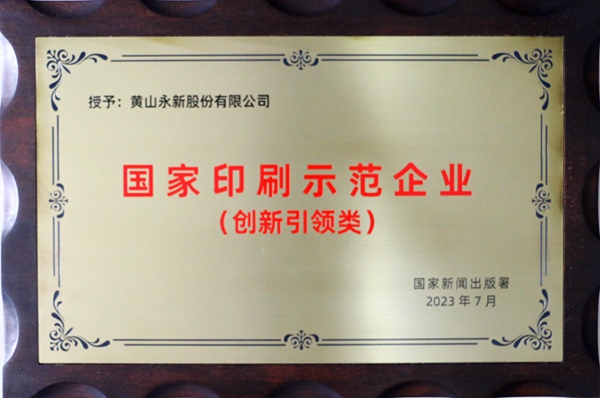 7月27日至28日,由國家新聞出版署舉辦的“2023中國印刷業(yè)創(chuàng)新發(fā)展大會”在山東濟南舉行。在大會開幕式上,國家新聞出版署授予黃山永新股份有限公司“國家印刷示范企業(yè)”稱號。